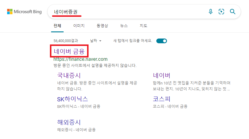 ■ 엣지(edge)에서 네이버 증권 바로가기 2가지 방법