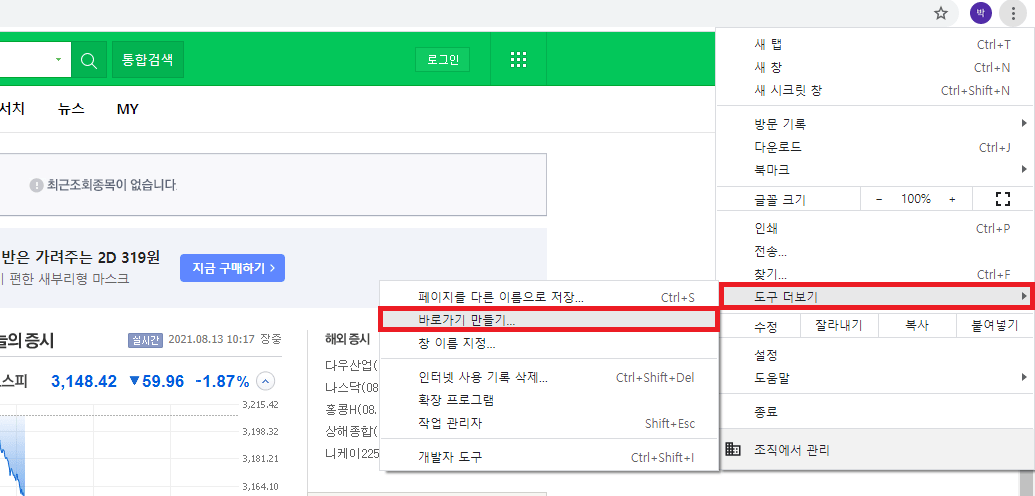■ 크롬(chrome)에서 네이버 증권 바로가기