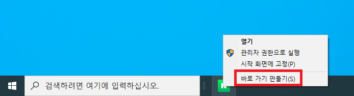 이제 작업 표시줄에 고정된 네이버 증권 아이콘에 shift + 마우스를 이동하여 오른쪽을 누른 후 바로 가기 만들기를 클릭해 주세요.