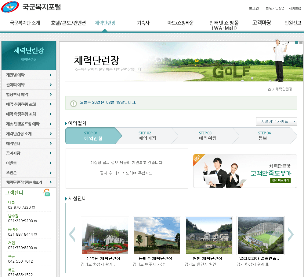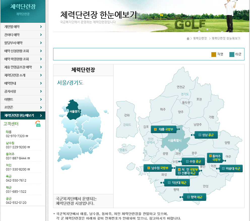 국군복지단에서 운영하는 체력단련장으로 전국에 시설이 갖춰져 있고 예약 후 이용할 수 있습니다. (처음 이용하는 경우라면 인터넷 회원 가입 후 현지 시설을 방문하여 구비서류 제출하고 사용이 가능합니다.)