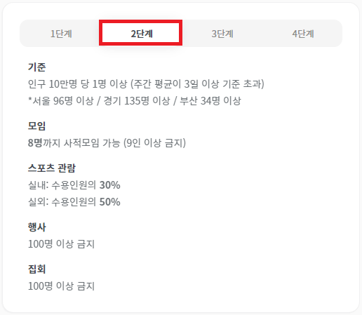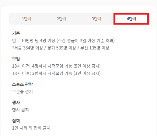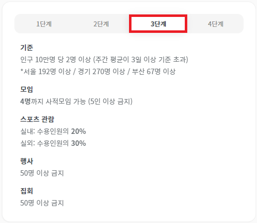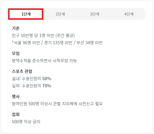 시ㆍ도별 거리두기 단계를 확인하였다면 이제 단계별 대응방안을 자세히 숙지하시고 방역수칙을 준수해 주시면 됩니다.
