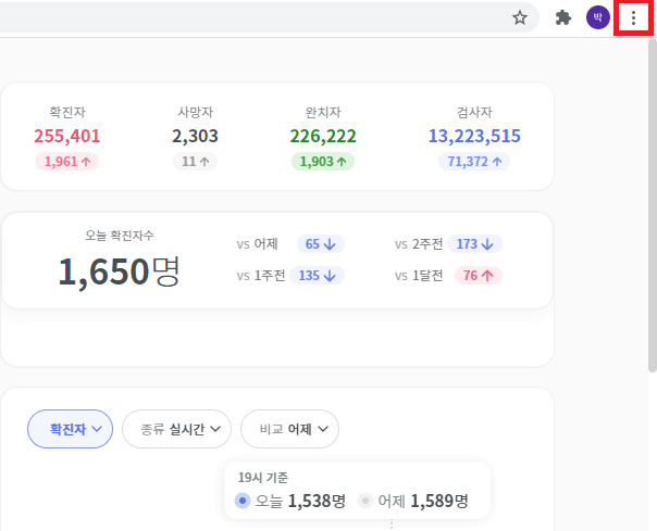■ 코로나 라이브 바로가기 - 크롬(chrome)
