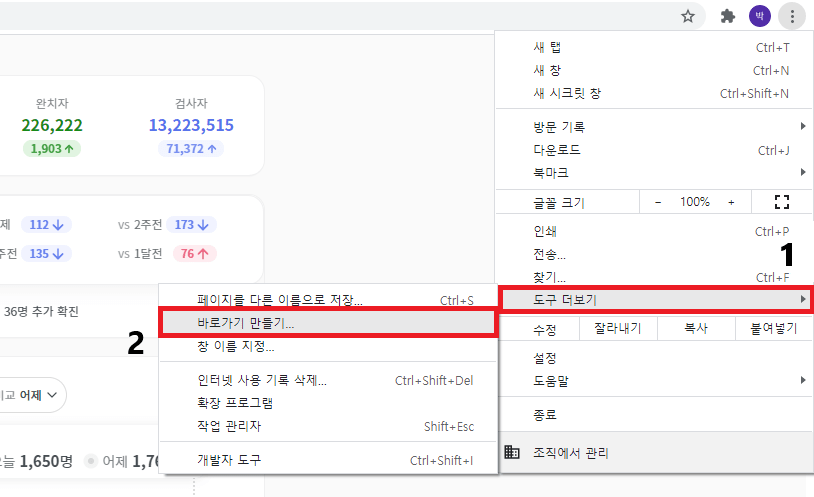 바탕화면에 바로가기 아이콘을 만들어 코로나 라이브 실시간 현황을 좀 더 빠르게 확인할 수 있습니다.