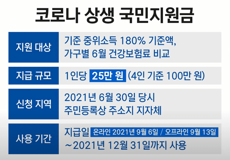 전 국민의 약 88%가 1인당 25만 원씩 받는 코로나 상생 국민 지원금(재난지원금) 지급절차가 오늘 6일 9시부터 시작되어 10월 27일까지 신청할 수 있습니다.