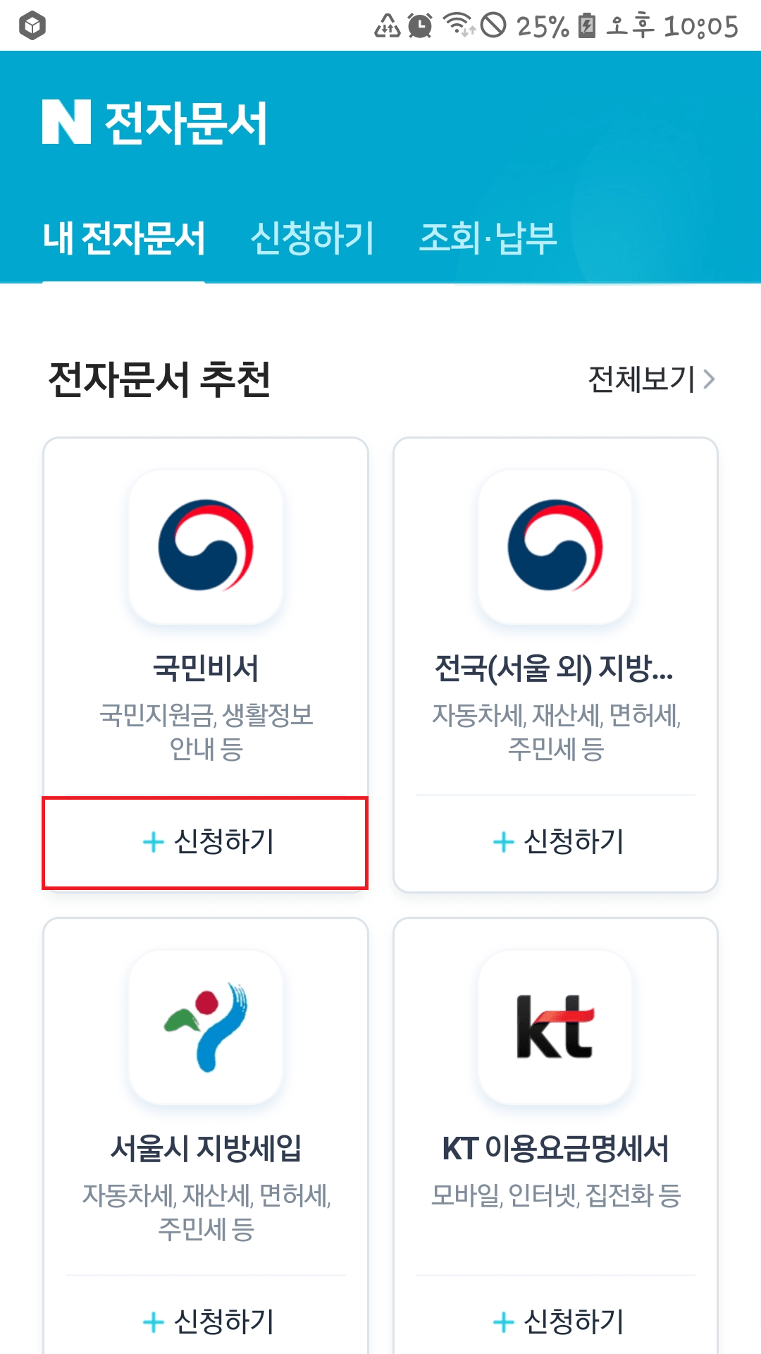 네이버 전자문서에서 아래로 내려가 '국민 비서'를 눌러 주세요.