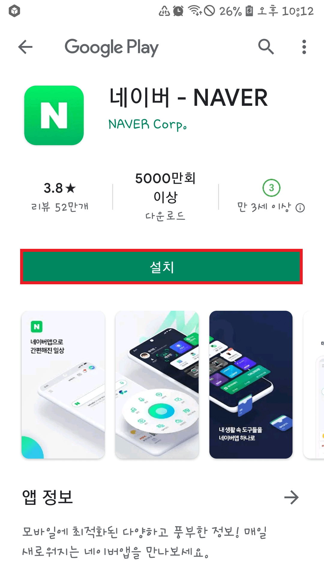 네이버 앱 설치를 진행하고, 설치 후 열기를 눌러 주세요.