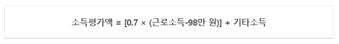 부부가구 2인 근로소득이 각각 98만 원 이상이면 1명씩 별도로 계산합니다. 기타 소득은 사업소득, 공적이전소득, 무료 임차 소득, 재산소득 등을 말하며, 이자소득은 월 4만 원을 공제하게 됩니다.