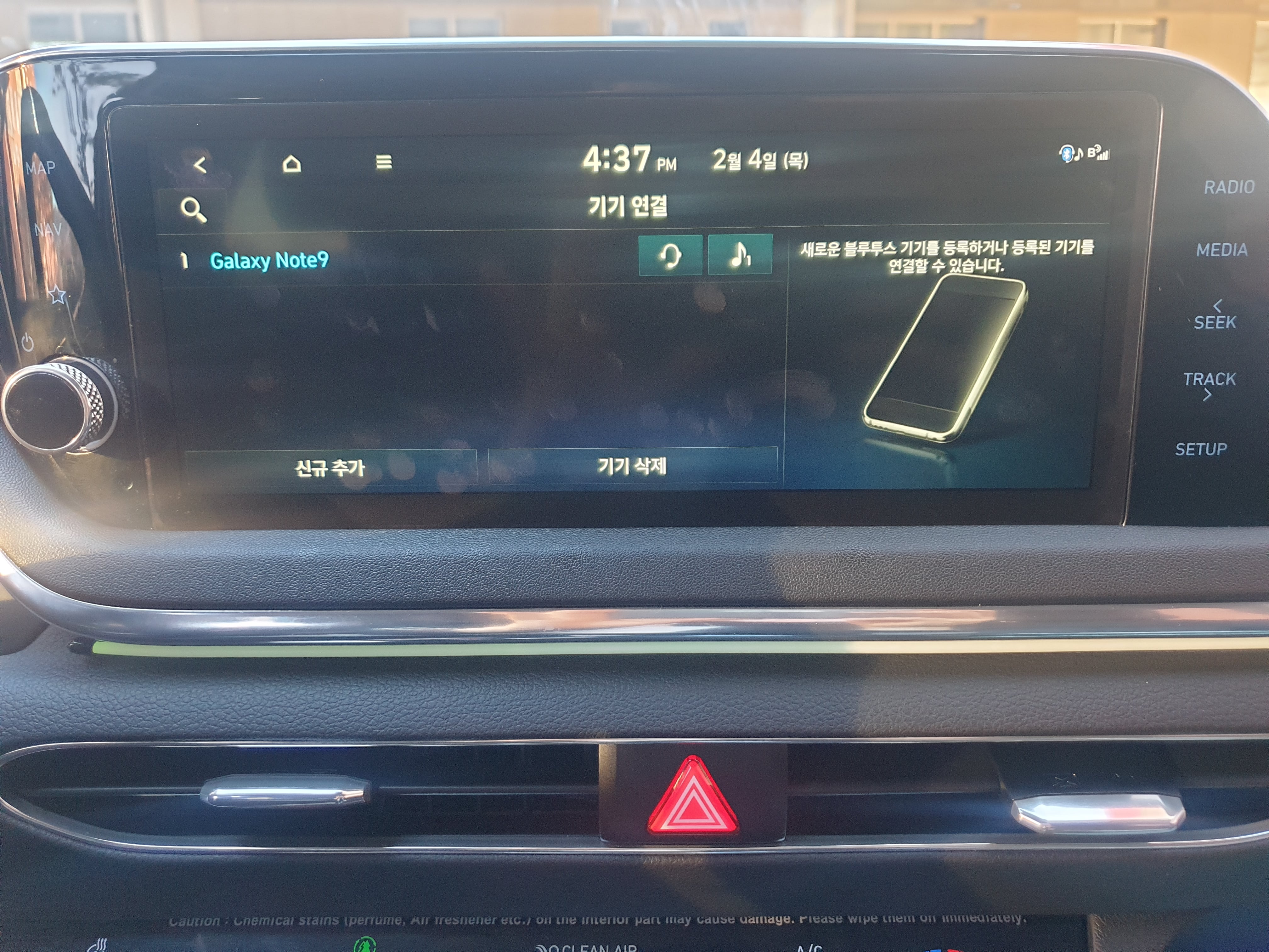 이 화면에서 바로 기기연결, 시스템 블루투스 정보가 있습니다. 기기연결은 말 그대로 바로 기기를 연결할 수 있도록 해주는 것이고 시스템 블루투스 정보는 이름이나 단어 등을 입력하게 되면 스마트폰에서 블루투스 설정 시 입력하여 주신 이름이나 단어가 표시되어 연결을 쉽게 할 수 있다는 것입니다. (시스템 블루투스 정보 입력 안 하시면 기본적으로 차량 이름이 나오며 저는 SONSTA라고 나와있습니다.)