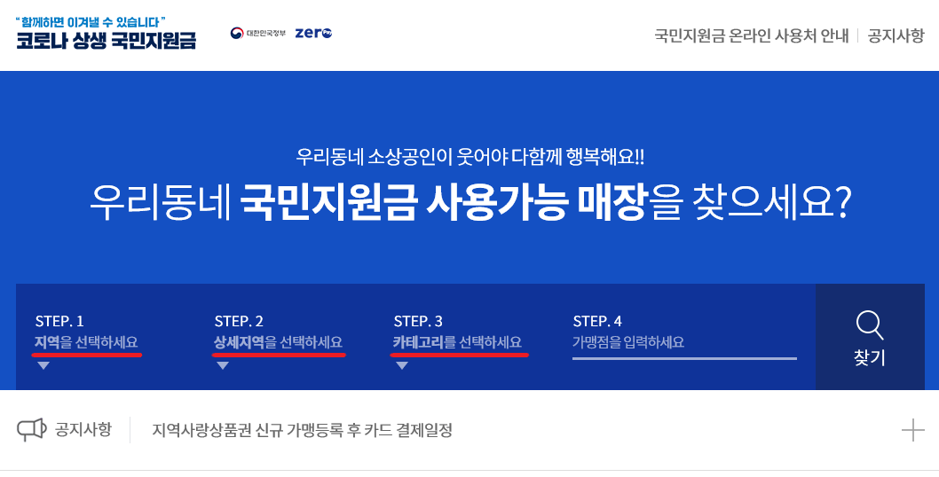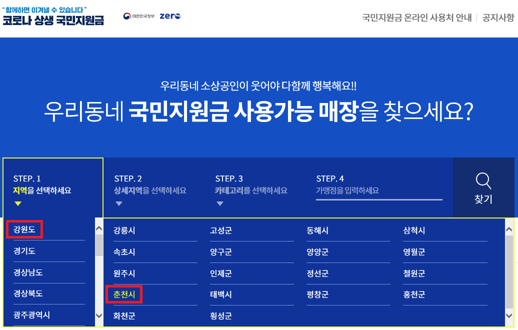 ■ 국민지원금 사용처 검색 방법(지역별 사용 가능한 가맹점)