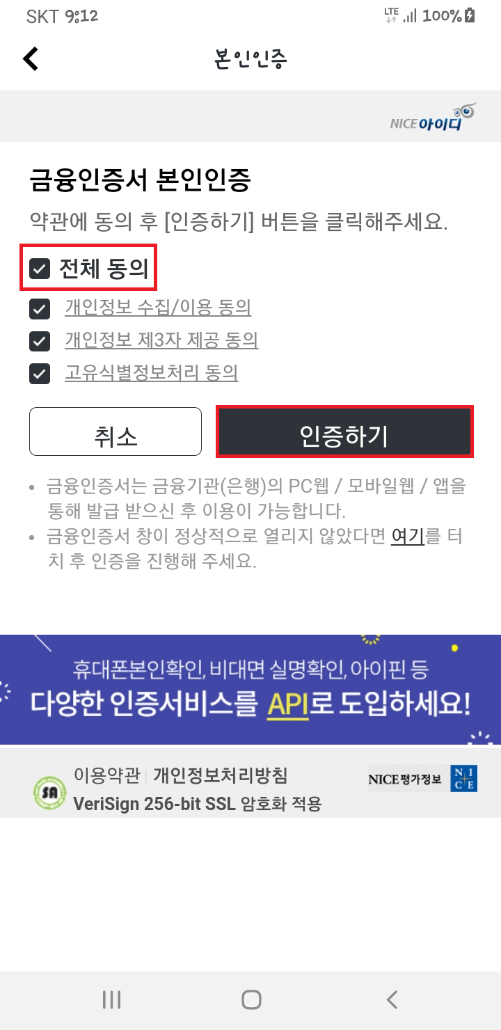 안전한 서비스 이용을 위한 본인인증 안내입니다. 확인을 눌러 주세요.