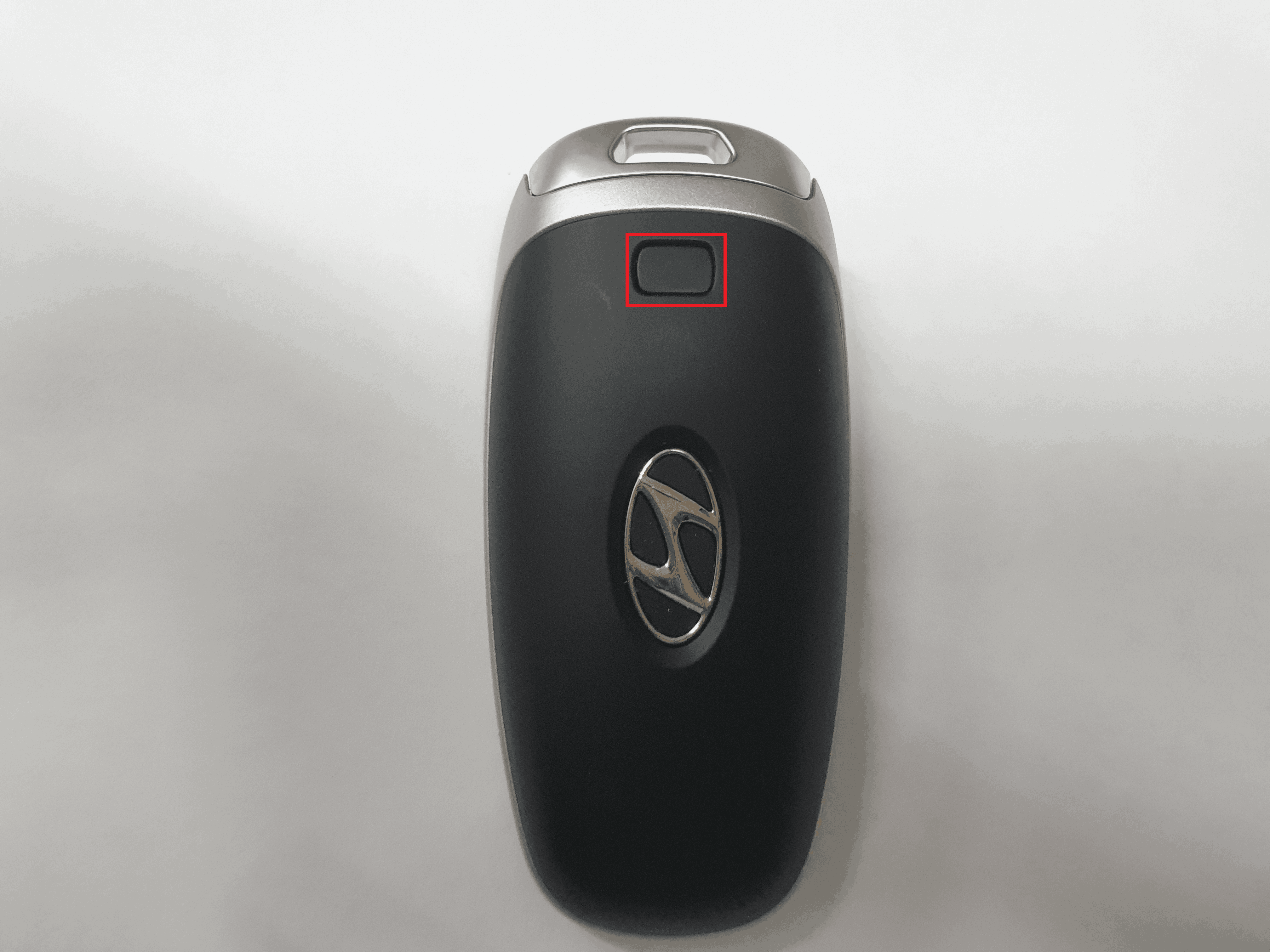 첫 번째로 배터리를 분리하기 위해 리모컨 키 뒷면에 네모난 부분을 누른 상태로 유지해 주세요.