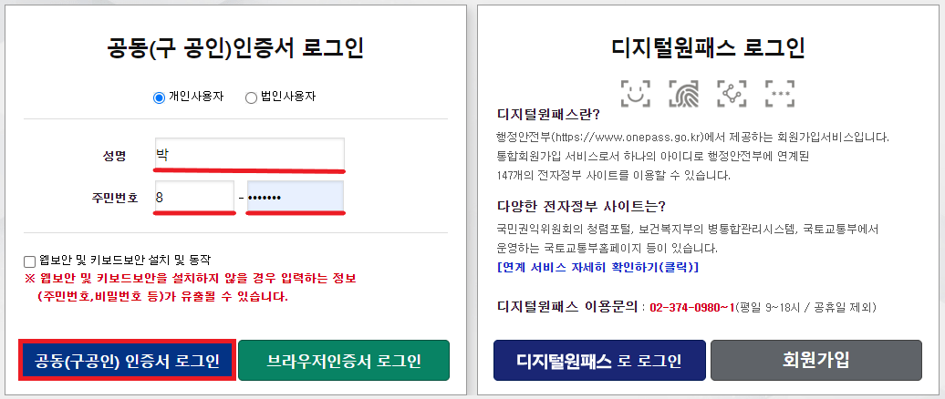 경찰청 교통민원 24 이파인 서비스를 이용하려면 공동(구 공인) 인증서 로그인이 필요합니다. 성명, 주민번호 입력 후 공동 인증서 로그인을 눌러 주세요.