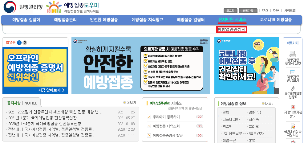 ■ 질병관리청 예방접종증명서 발급 방법