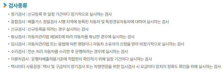 자동차 정기검사는 자동차 관리법 제43조에 따라 자동차가 안전운행을 하는데 이상 없이 운행이 가능한지 확인하기 위해 국토교통부 장관이 일정기간마다 실시하는 정기검사입니다.