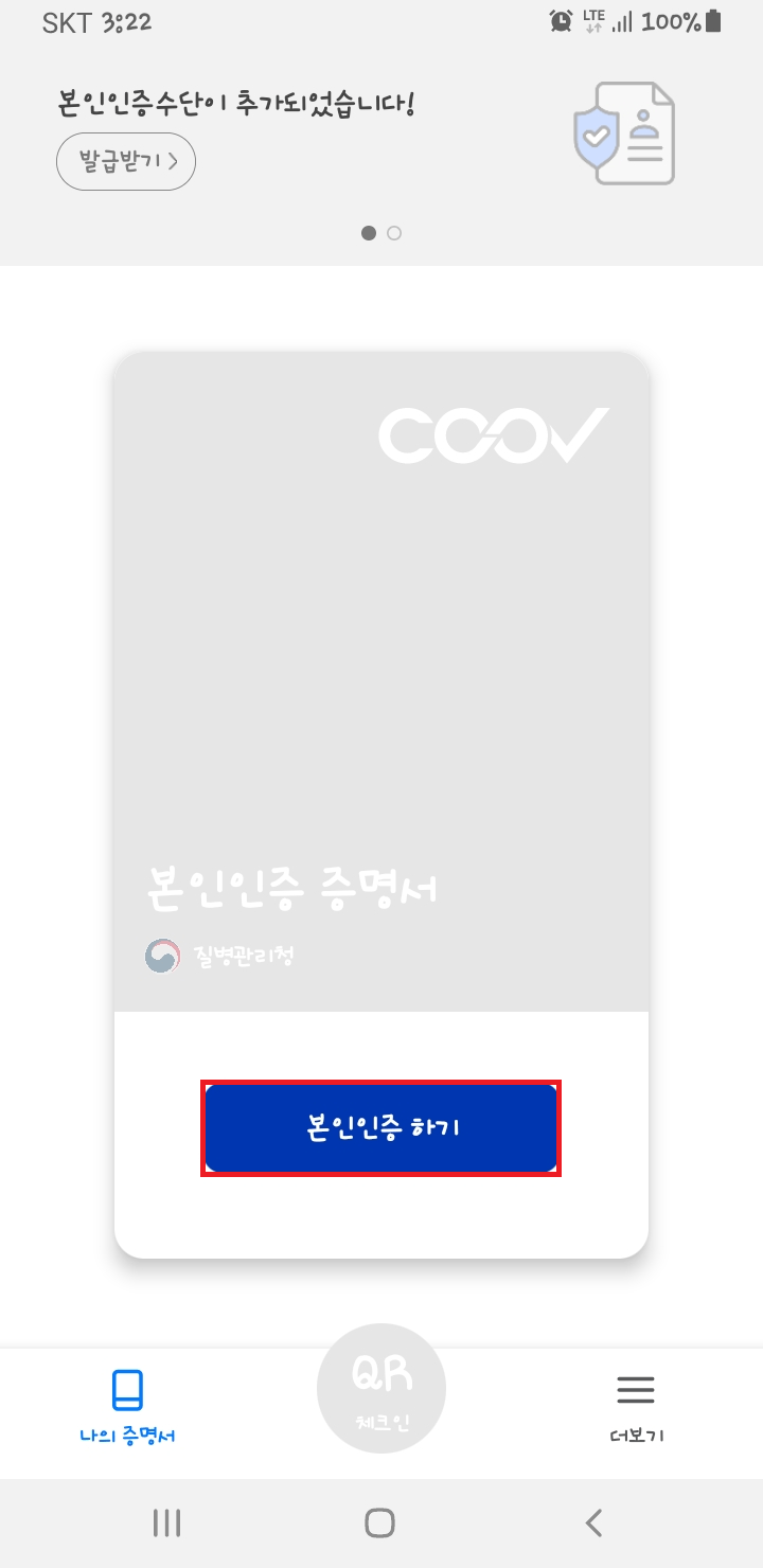 다양한 본인 인증수단으로 안전한 COOV 앱 서비스를 이용할 수 있습니다. '본인인증 하기'를 눌러 주세요.