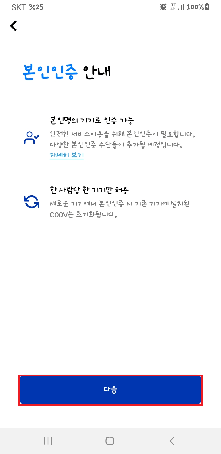본인인증 안내에서 아래 '다음'을 눌러 주세요.