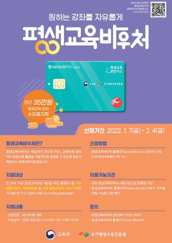 - 평생교육 바우처 카드 사용 기간은 별도 공지 예정