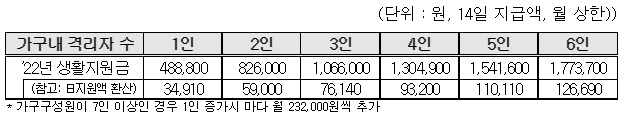 2) 생활지원비