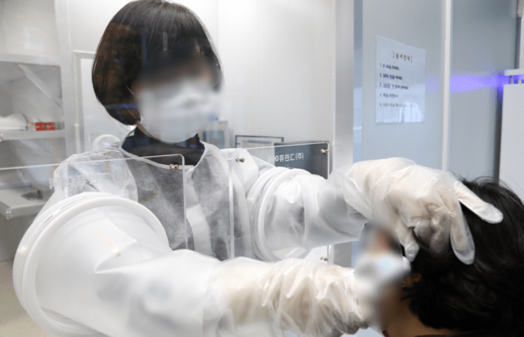 - 전문가용 : 병·의원에서 검사할 때는 면봉을 콧속 끝인 비인두까지 10cm가량 넣아 채취한 비인두도말물을 사용