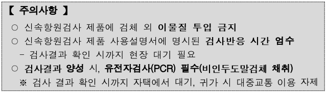 ※ 코로나19 감염 여부를 신속히 확인하기 위한 것으로 확진검사를 위해서는 별도의 유전자 검사(PCR) 필요