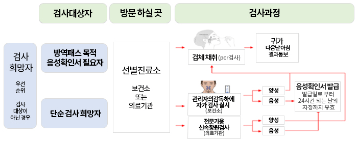 | 음성일 경우 | 마스크 착용 등 방역수칙 준수 단, 증상이 있을 경우, 의료기관(병·의원)진료 후, 필요시 검사 |