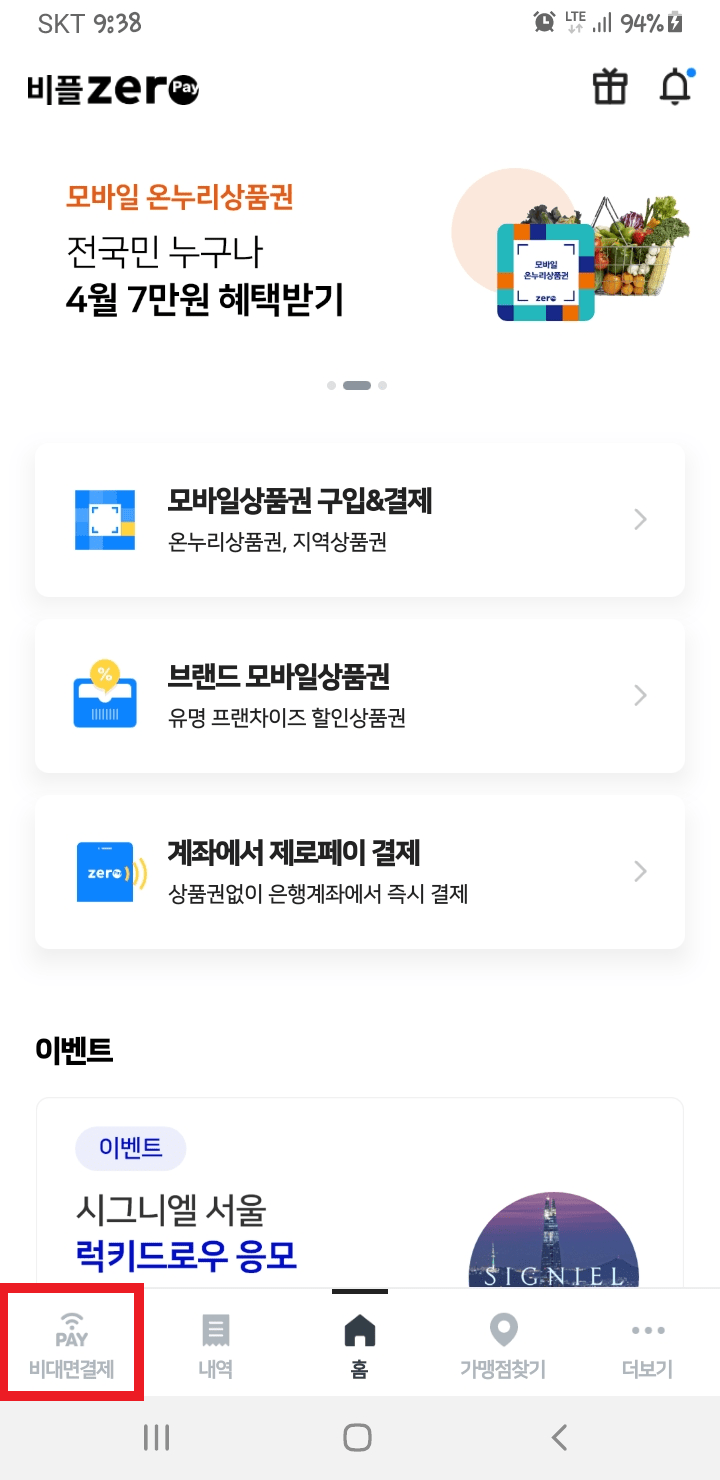 그럼 제로 페이 사용법 중 비대면으로 결제하는 방법 알려드리도록 하겠습니다.
