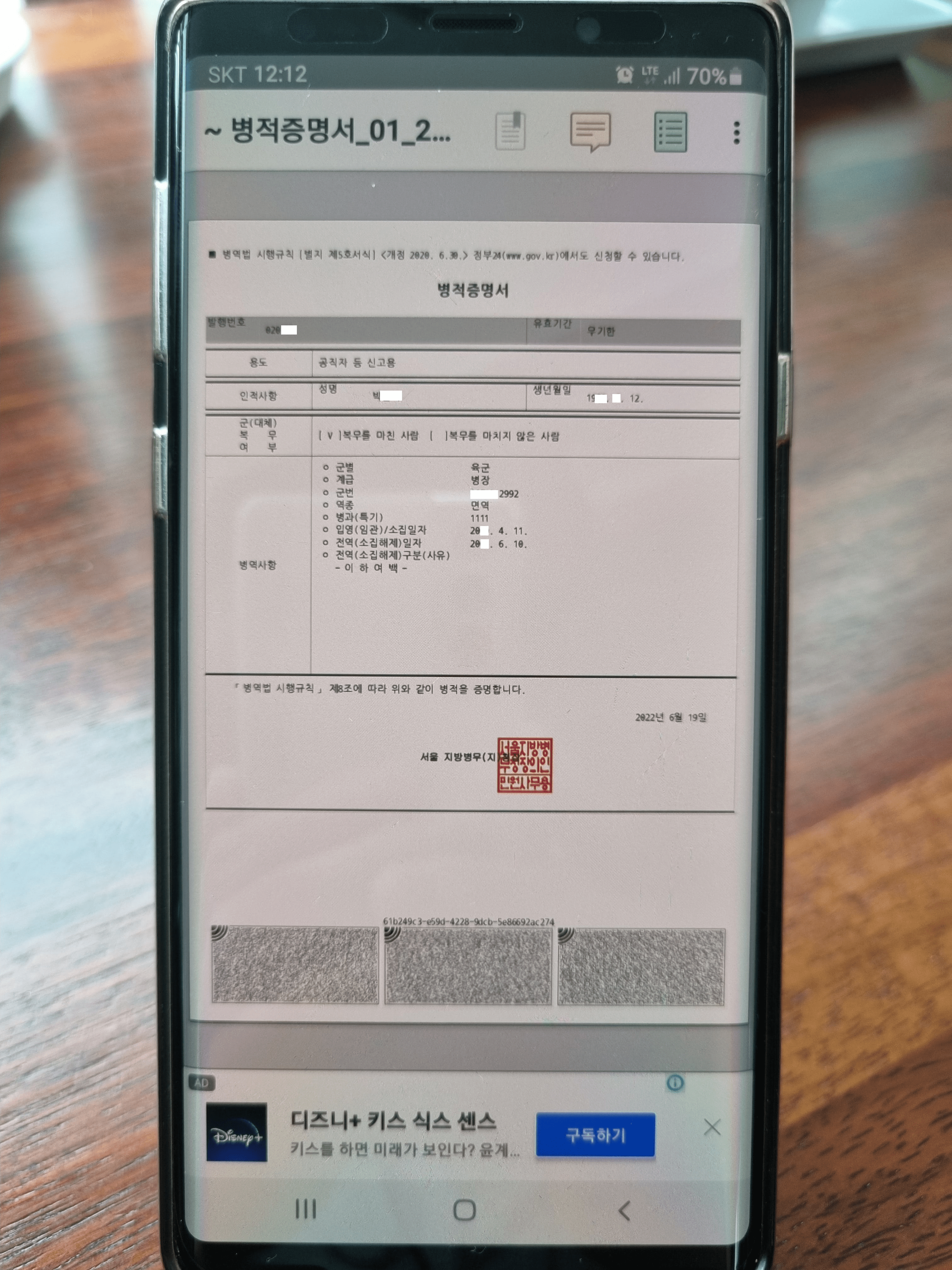 e-병무 지갑을 통하여 병적증명서가 PDF로 발급됩니다.