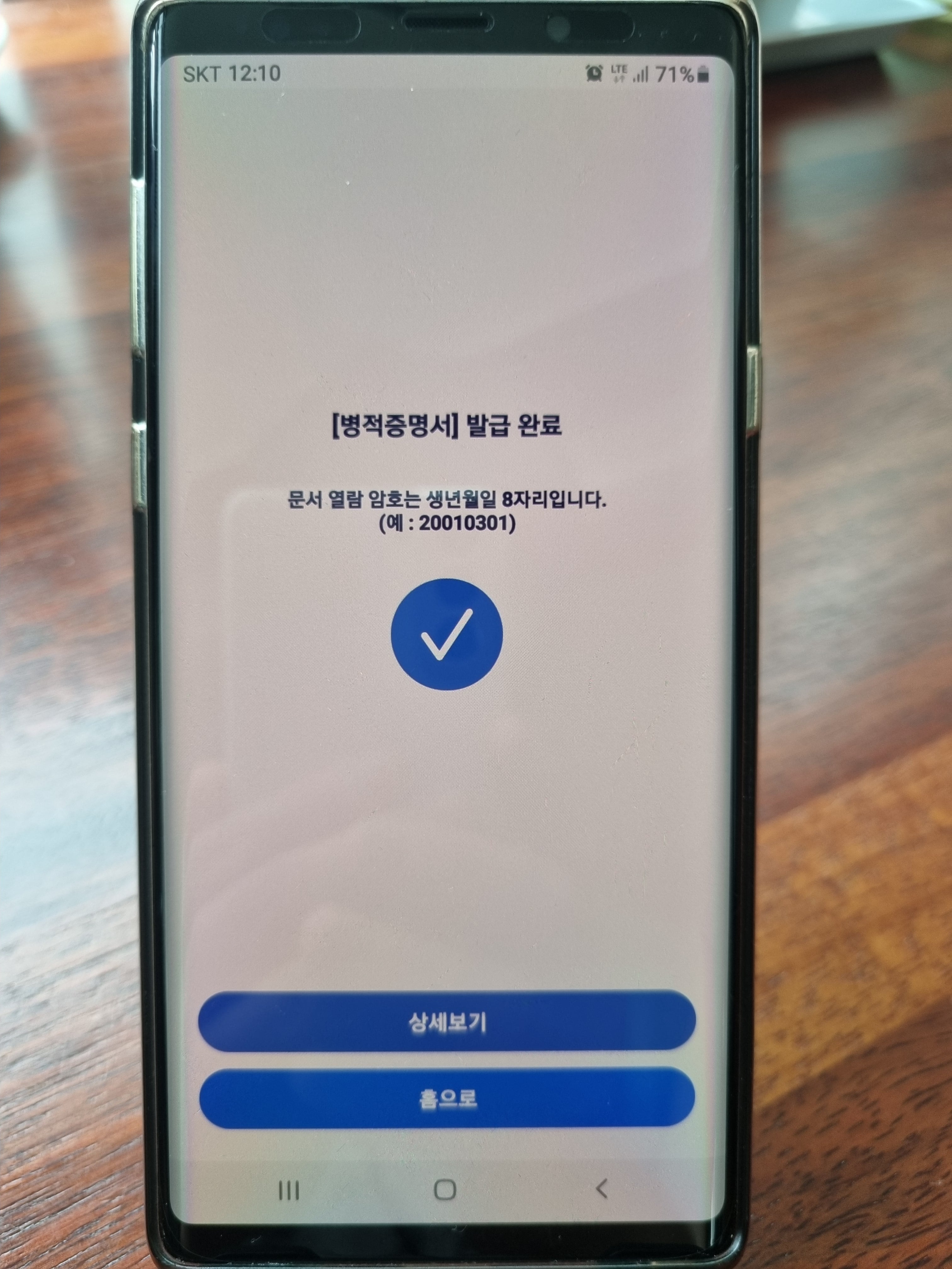 병적증명서 발급이 완료됩니다. '상세보기'를 눌러 주세요.