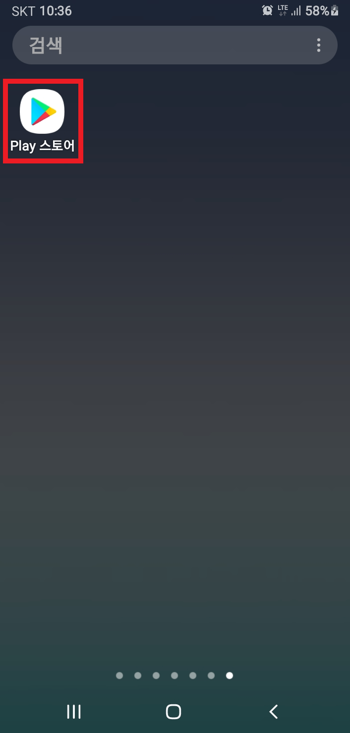 1) 처음 KOK PLAY 어플을 다운로드하기 위해 스마트폰에 설치되어 있는 '구글 플레이스토어'를 실행하여 주세요.(안드로이드 버전입니다.)
