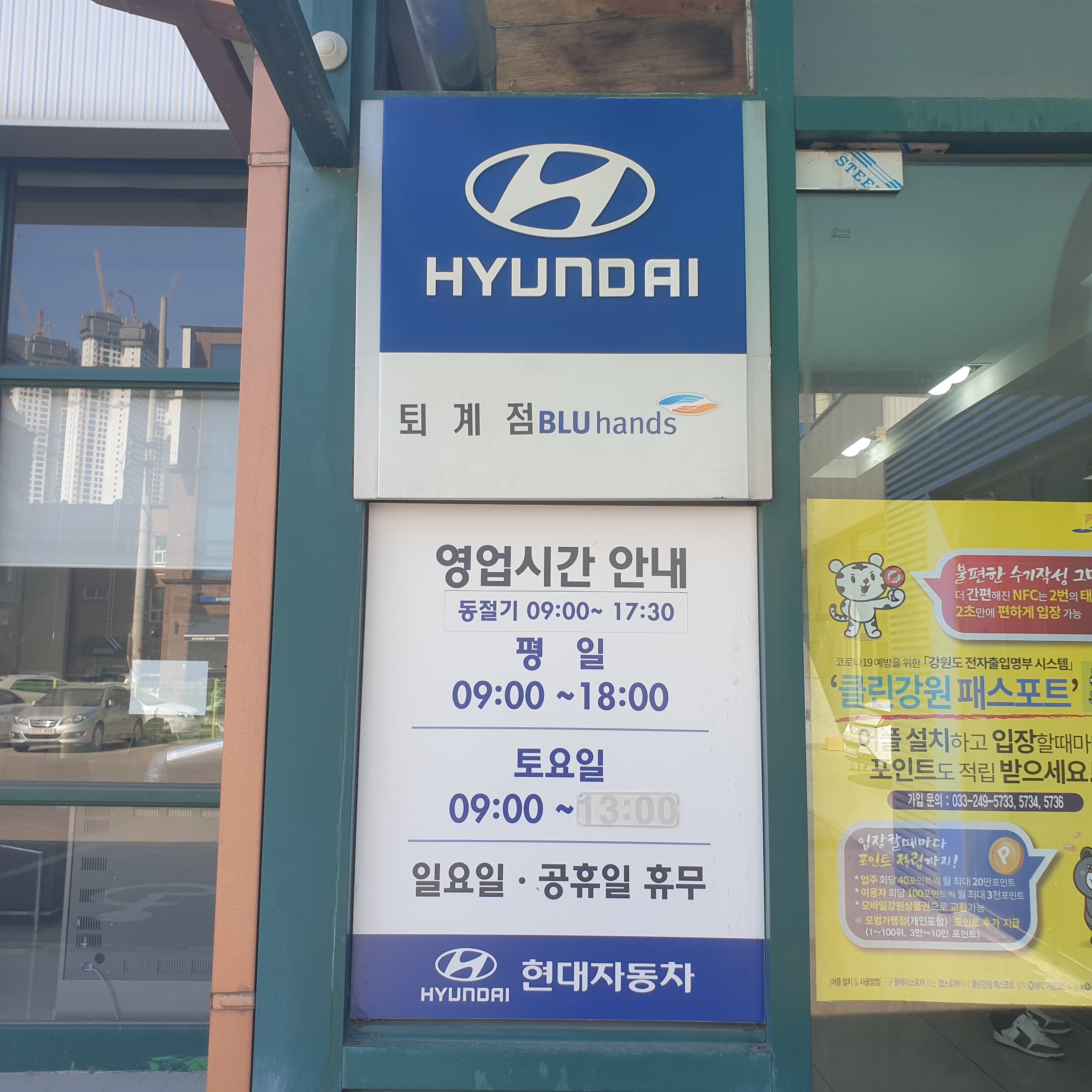 ㅇ 블루핸즈 영업시간 : 평일 09:00 ~ 18:00, 토요일은 09:00 ~ 16:00 이전으로 지역마다 다르며 격주로 교대로 돌아가면서 블루핸즈를 운영하시는 곳이 많습니다. 꼭 토요일에 방문 시에는 사전에 전화 통화하시고 방문해 주세요.