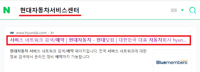 첫 번째로 네이버 검색창에 '현대서비스센터 예약'을 입력하고 검색해 주세요.