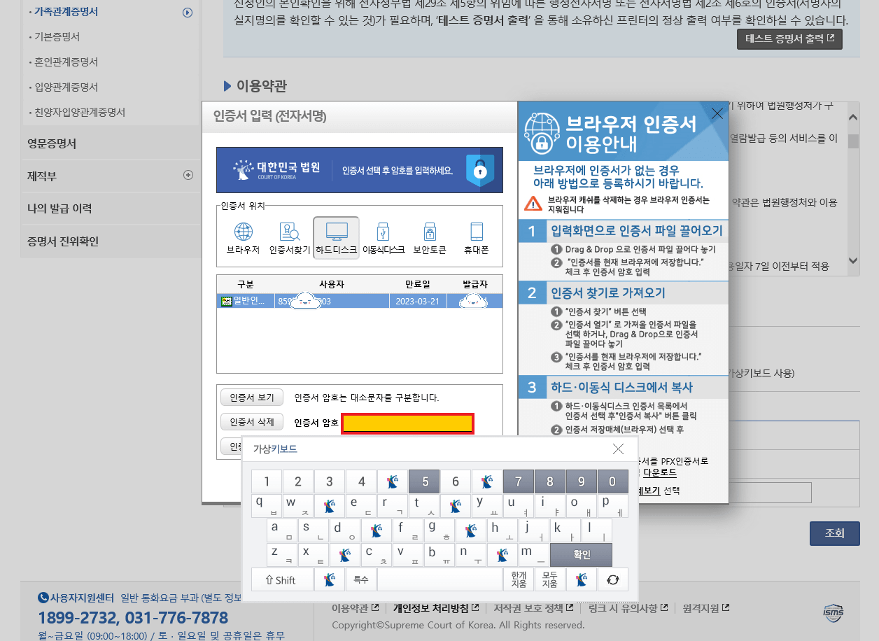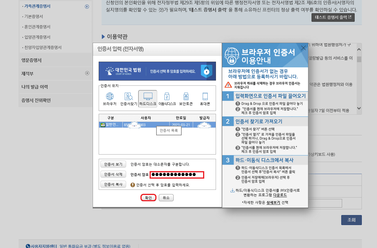 인증서가 발급되었다면 인터넷에서 가족관계증명서를 쉽게 출력해보도록 하겠습니다.