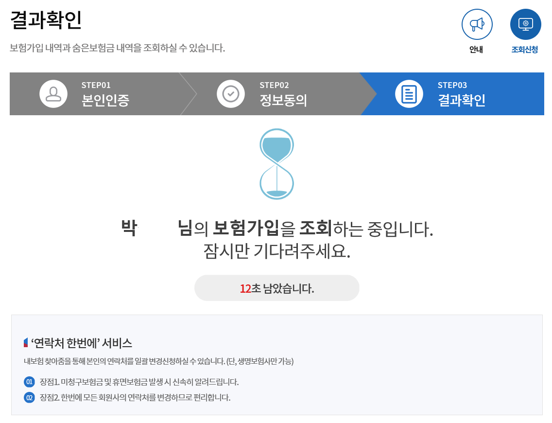 보험가입 내역과 숨은보험금 내역을 찾기·조회하기 위해 잠시만 기다려 주세요.