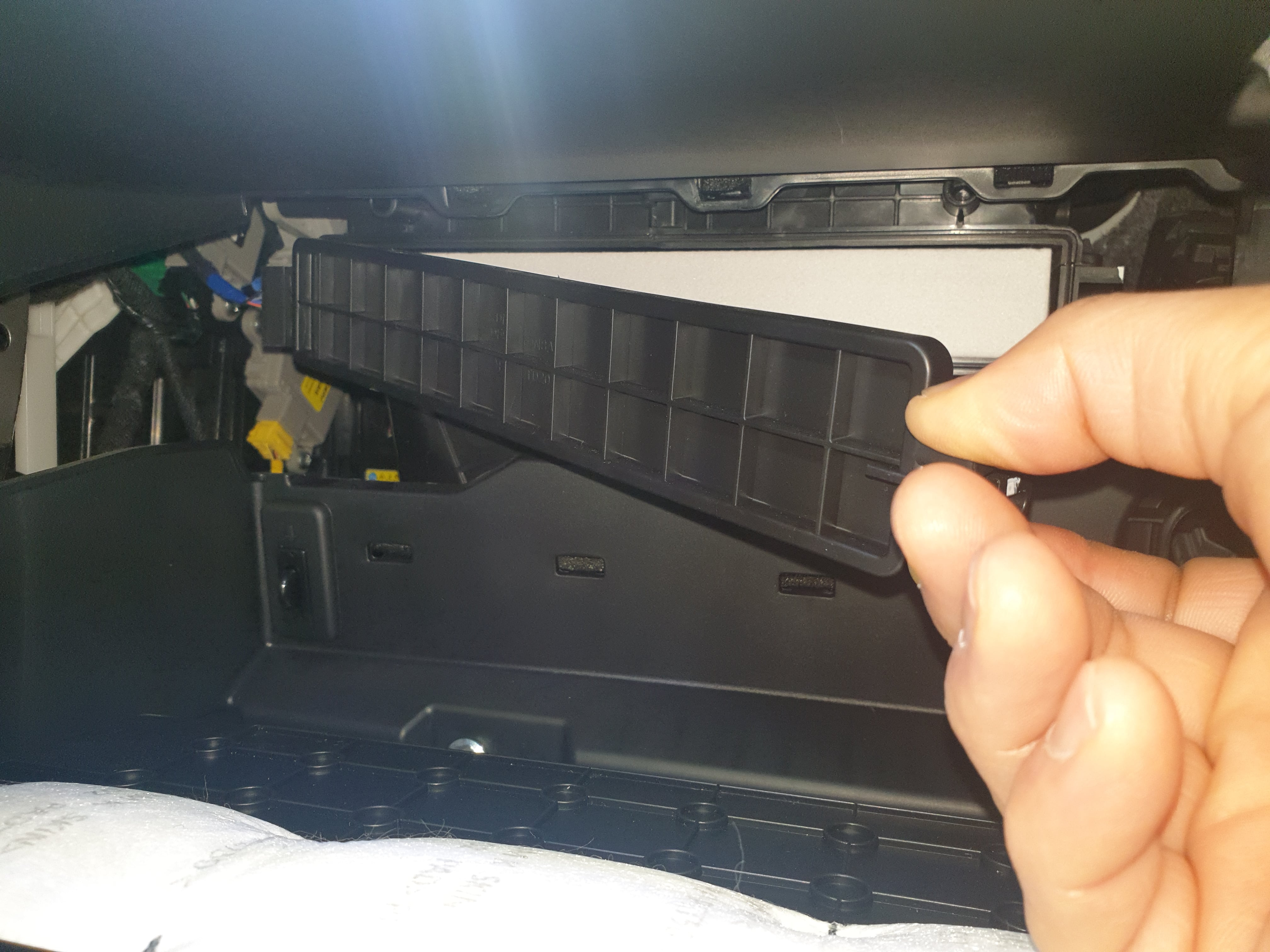 커버가 분리되면 기존에 장착되어 있던 에어컨 필터 밑 부분을 잡고 빼내어 주시면 됩니다.