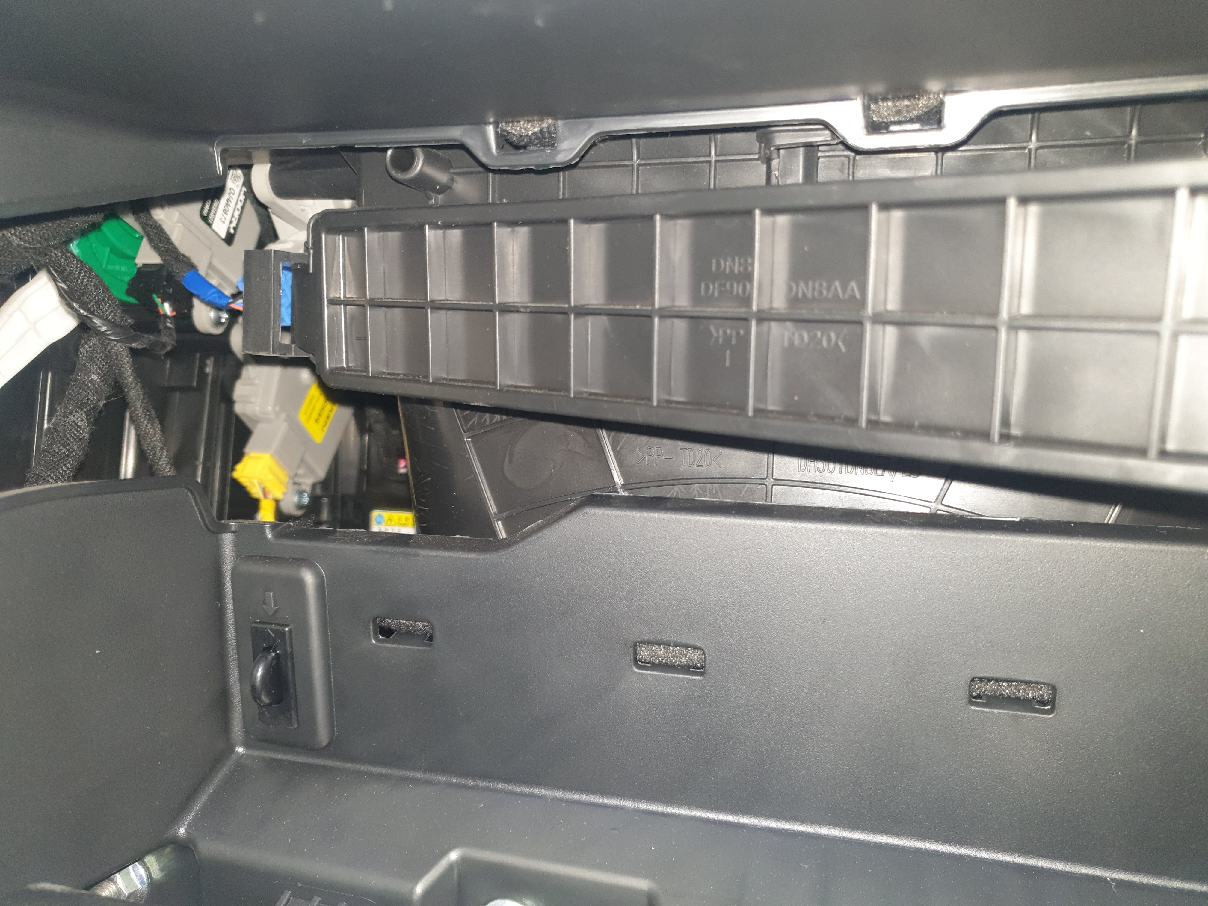 걸려 있던 고정 장치들이 분리되고 글로브 박스가 아래로 내려오게 됩니다.