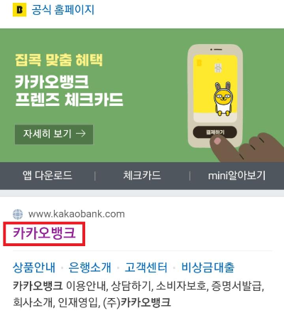 스마트폰에서 인터넷 포털사이트나 구글플레이어, 앱스토어에서 카카오뱅크를 검색하여 주시고 클릭해 주세요.