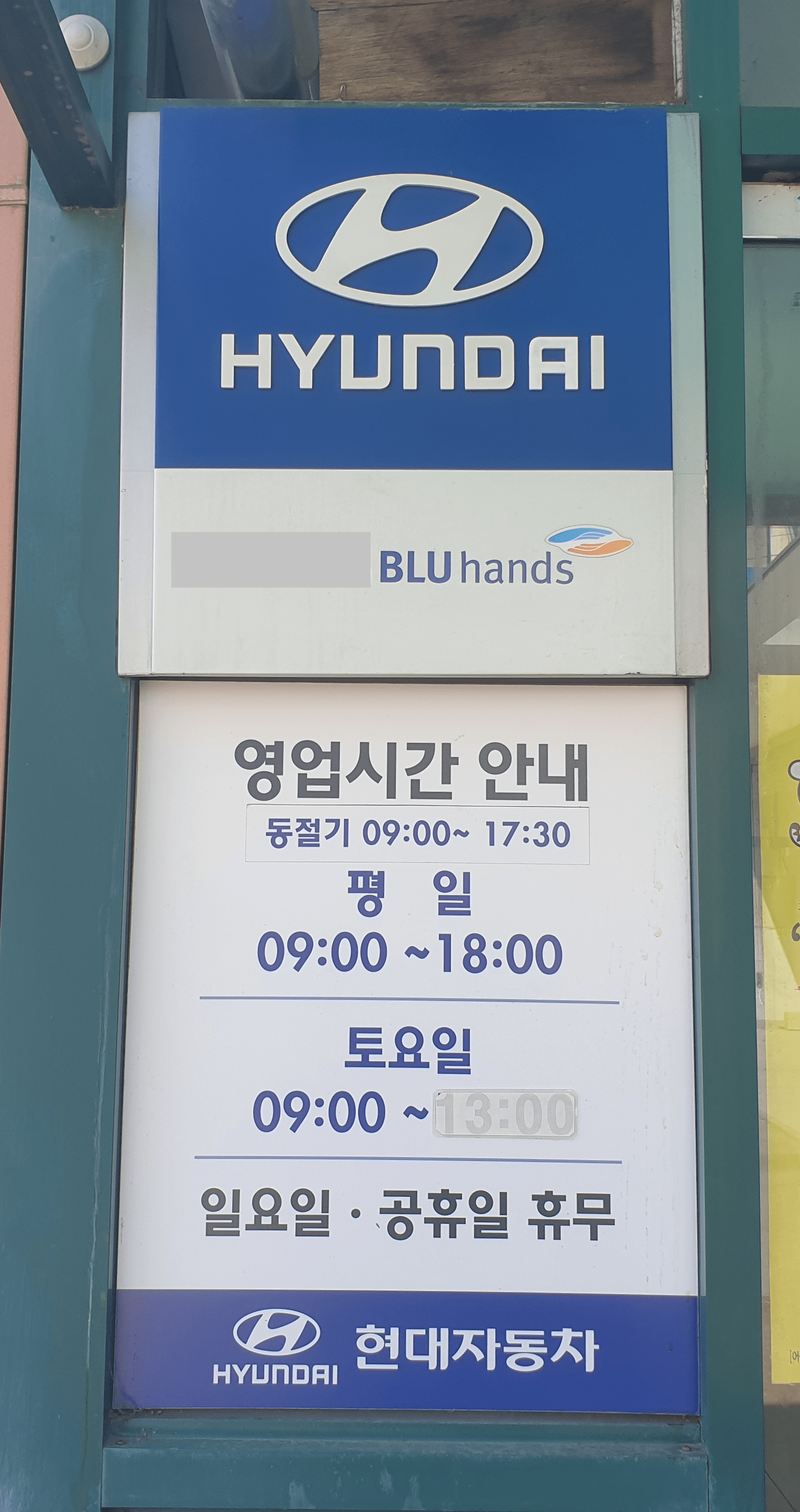 * 현대자동차 블루핸즈 영업시간은 업체마다 다를 수 있으니 참고하여 주세요. 다른 이유는 블루핸즈는 현대자동차의 협력사로 개인이 운영하는 사업장입니다. 그래서 블루핸즈마다 영업시간이 다를 수 있습니다.