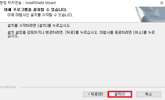 한글타자연습 프로그램을 설치하기 위해 설치를 눌러 주세요. 설치가 시작됩니다.