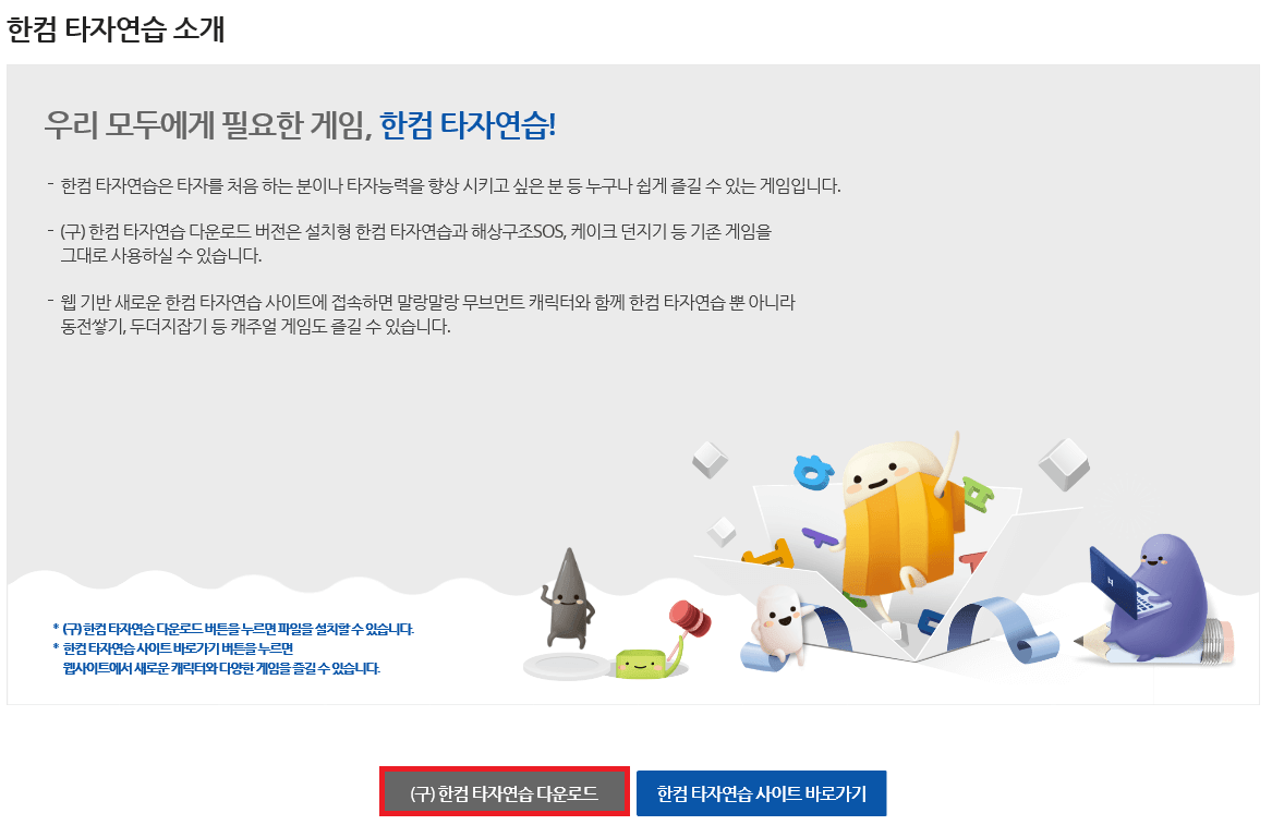 다음으로 아래 (구) 한컴 타자연습 다운로드, 한컴타자연습 사이트 바로가기 중에서 (구) 한컴 타자연습 다운로드를 눌러 주세요.