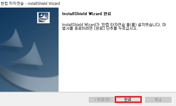 마지막 화면으로 한글타자연습 설치가 완료되었습니다. 아래 완료를 눌러 주면 PC 바탕화면에 한글타자연습 바로가기가 생생 되고 타자연습을 시작하면 됩니다.