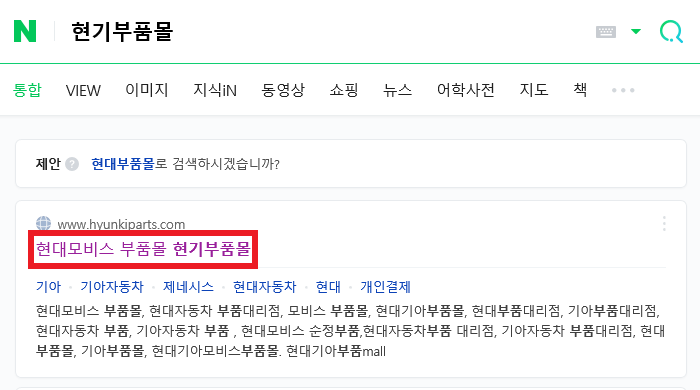 이용방법은 첫 번째로 인터넷 포털사이트에 접속하여 현기부품몰 이라고 입력하고 검색을 해주세요.