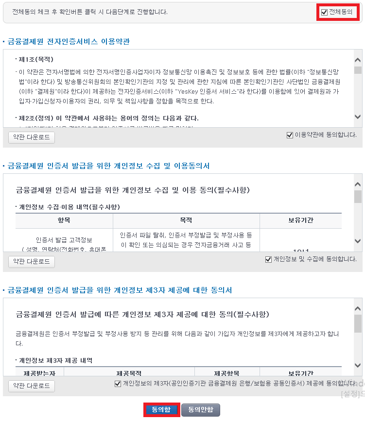이용자 ID 입력이 완료되었다면 약관 동의 내용을 확인하고 '전체 동의' 체크박스를 선택해 주세요.