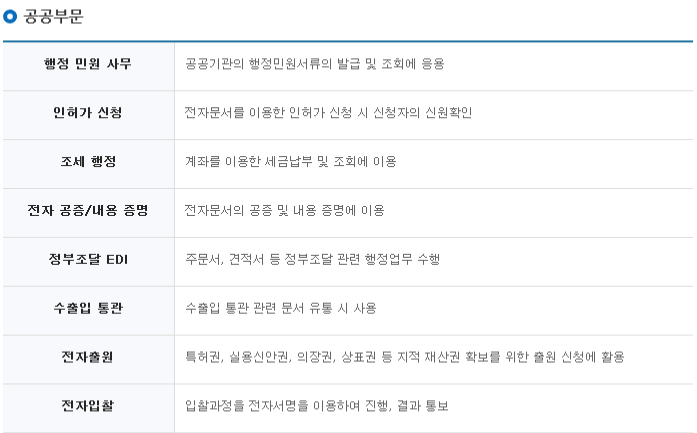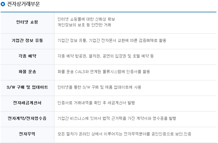 공동 인증서(구 공인인증서) ▶ 은행 및 보험 인터넷뱅킹, 인터넷 신용카드 결제, 정자정부 민원서비스(전자입찰 제외)를 사용할 수 있고 인증서를 발급 시 1년간 사용 가능하며 발급 수수료는 무료입니다. 개인적으로 많이들 사용하는 공동인증서라고 보시면 됩니다.