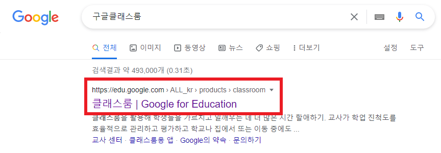 첫 번째로 구글 검색창에 구글 클래스룸을 입력하고 검색하여 주세요.