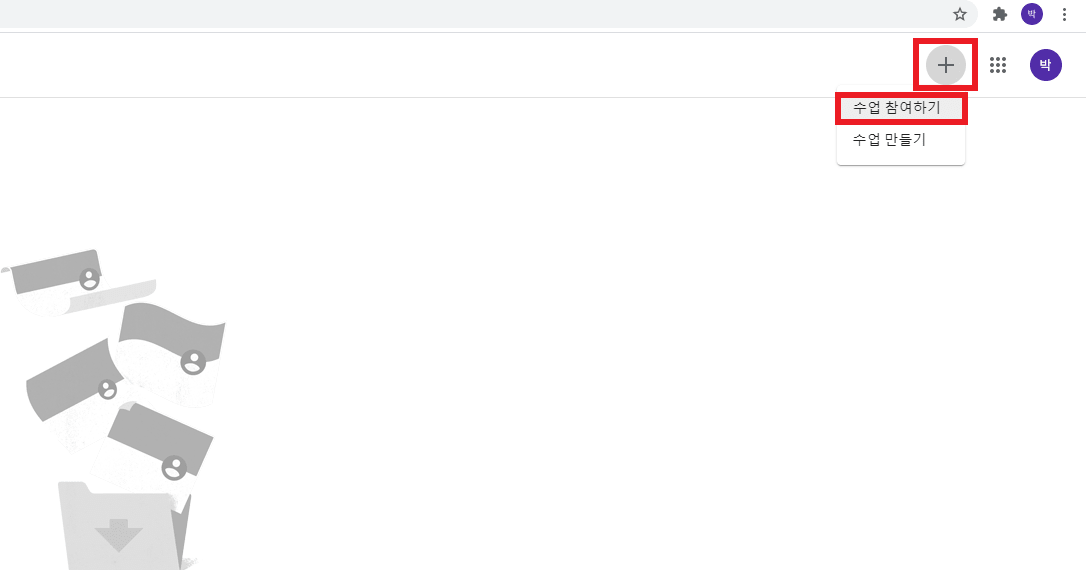 다음 우측 상단에 보이는 +아이콘을 클릭해 주고 아래 수업 참여하기를 클릭해 주면 됩니다.