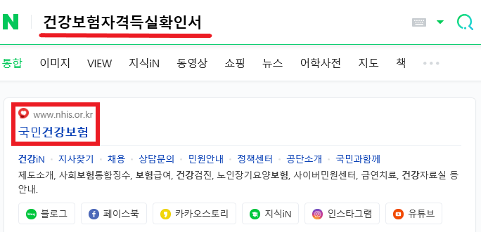 첫 번째로 자주 사용하는 인터넷 포털 검색창에 '건강보험자격득실확인서'를 입력하고 검색해 주세요.