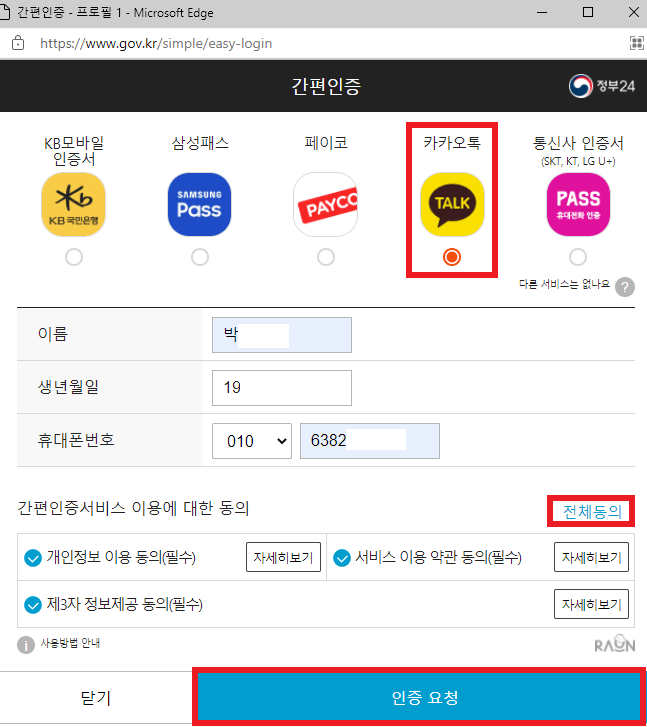 회원 신청 시 공동ㆍ금융 인증서 등록 화면입니다. 또한 간편 인증을 클릭하면 휴대폰 본인 확인을 통해 로그인이 가능 하니 참고해 주세요.