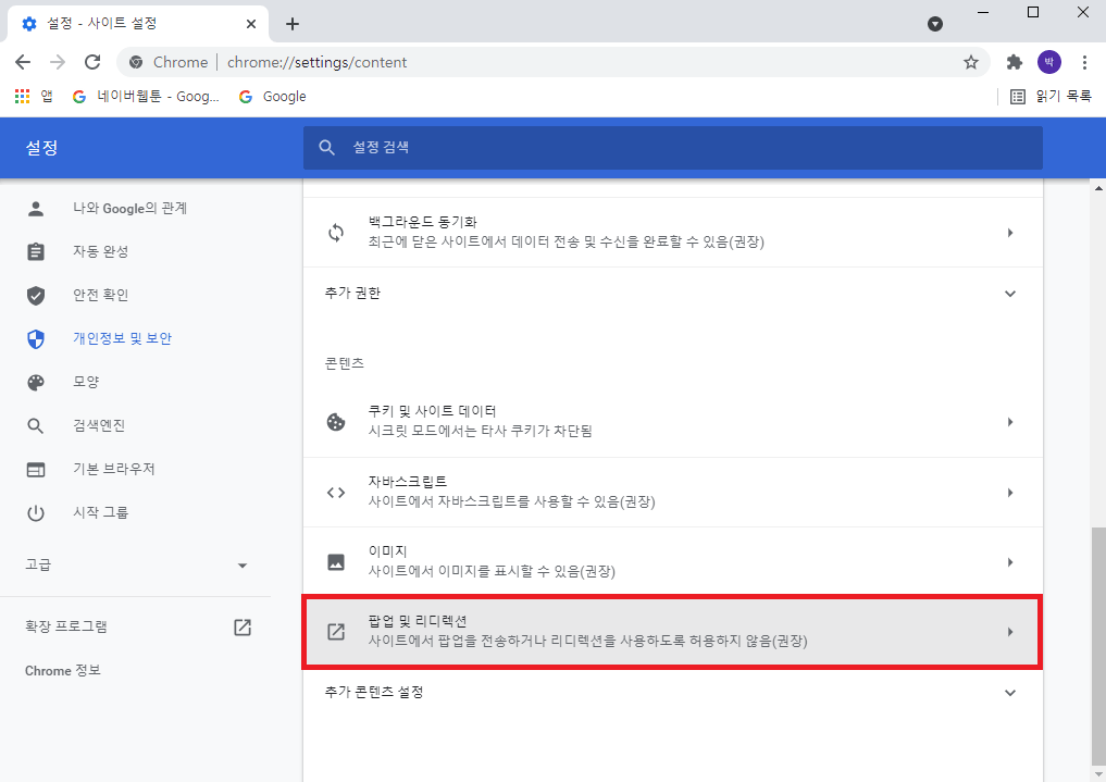 ■ PC에서 크롬 팝업 차단 해제 방법