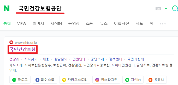 처음으로 자주 이용하는 포털사이트 검색창에 '국민건강보험공단'을 입력하고 검색 아래 홈페이지에 접속해 주세요.
