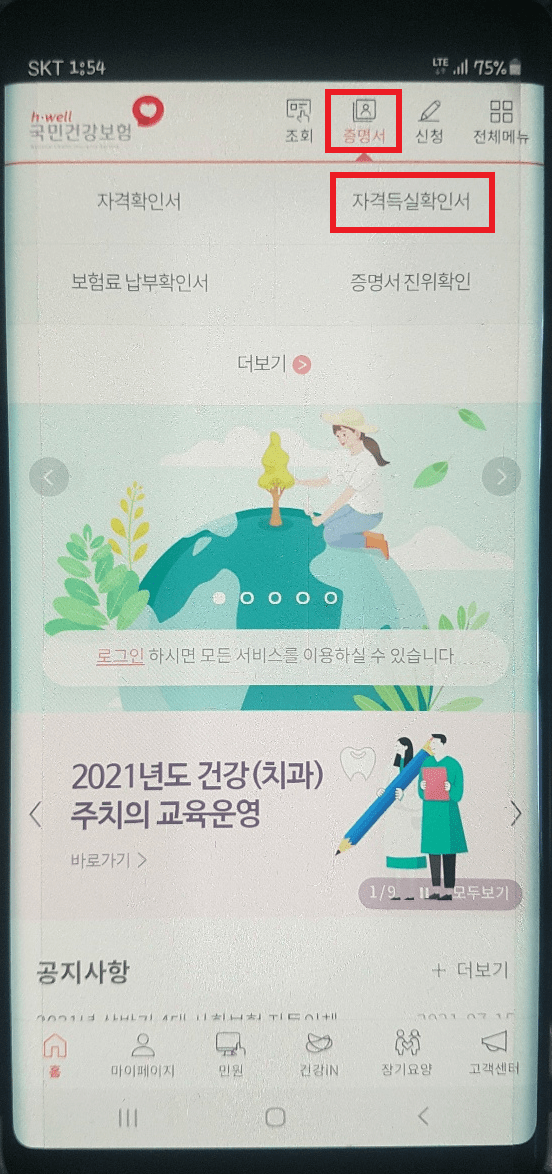 2. 건강보험자격득실확인서 모바일 발급(스마트폰)
